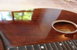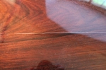 die Saite soll sich beim Wickeln um den Wirbel niemals selbst umwickeln (notfalls abschneiden falls sie zu lang ist; Vorsicht keine Stahlsaiten mit Nylonumwicklung abschneiden!!!)Der Abstand zum Wirbelstockfurnier soll etwa 2-3mm betragen. | |   | Risse spanen, lackieren und retuschieren Durch zu trockenes Raumklima (unter 40% Luftfeuchtigkeit) schwindet Holz stark und es kann leicht ein Riss im Instrument entstehen. Dieser wird vom Instrumentenbauer mit einem dünnen Holzstreifen ausgespant, lackiert und anschließend retuschiert. Mit genug Erfahrung lässt sich ein gespanter Riss dadurch unauffindbar machen ;-) | |  | Schellack polieren Die alten Meister des Zitherbaus lackierten fast ausschließlich mit Schellackpolituren. Sie wussten um die hervorragenden klanglichen und zudem auch optischen Eigenschaften der Spiritus-Harzlösungen. Diese erzeugen eine leuchtende Tiefenwirkung im Holz, der Laie würde sagen "man kann ins Holz hineinschauen". Klanglich gibt es keine vergleichbaren Alternativen: jedes Spitzen-Zupfinstrument wird heute noch Schellackiert.